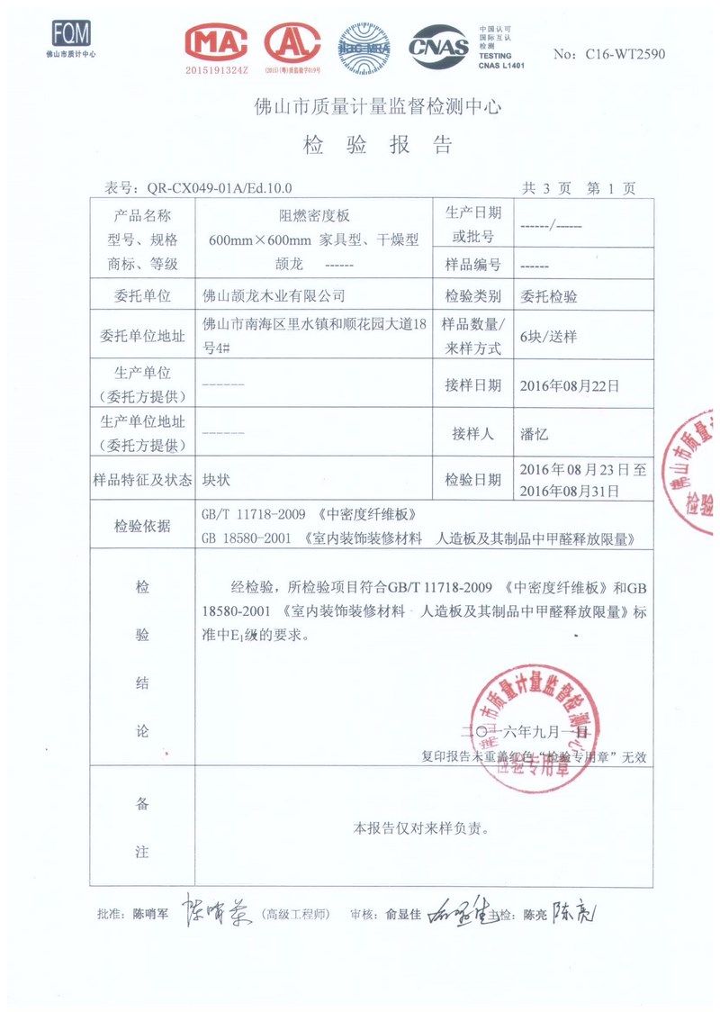 佛山頡龍木業(yè)有限公司,成立于2015年7月,集多種特殊板材的研發(fā),生產,銷售于一體。主打產品包括有阻燃密度板,阻燃膠合板,A級阻燃板,防潮密度板等等。其標準有(國標B1-C,國標B1-B,美標ASTME84-A,英標BS476,歐標EN13501,澳標AS5637.1)廣泛應用于建筑裝飾、酒店裝修、家具制造、隔斷墻和地板等行業(yè)。產品的穩(wěn)定性,優(yōu)質的服務得到業(yè)內的認可。 佛山頡龍木業(yè)有限公司,自創(chuàng)立以來,以“誠信為本,優(yōu)質產品,共贏互利”為發(fā)展宗旨,致力于打造優(yōu)質功能板材。